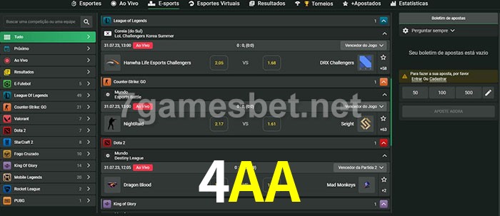 O 4AA oferece uma grande seleção de opções de apostas em e-sports com probabilidades competitivas